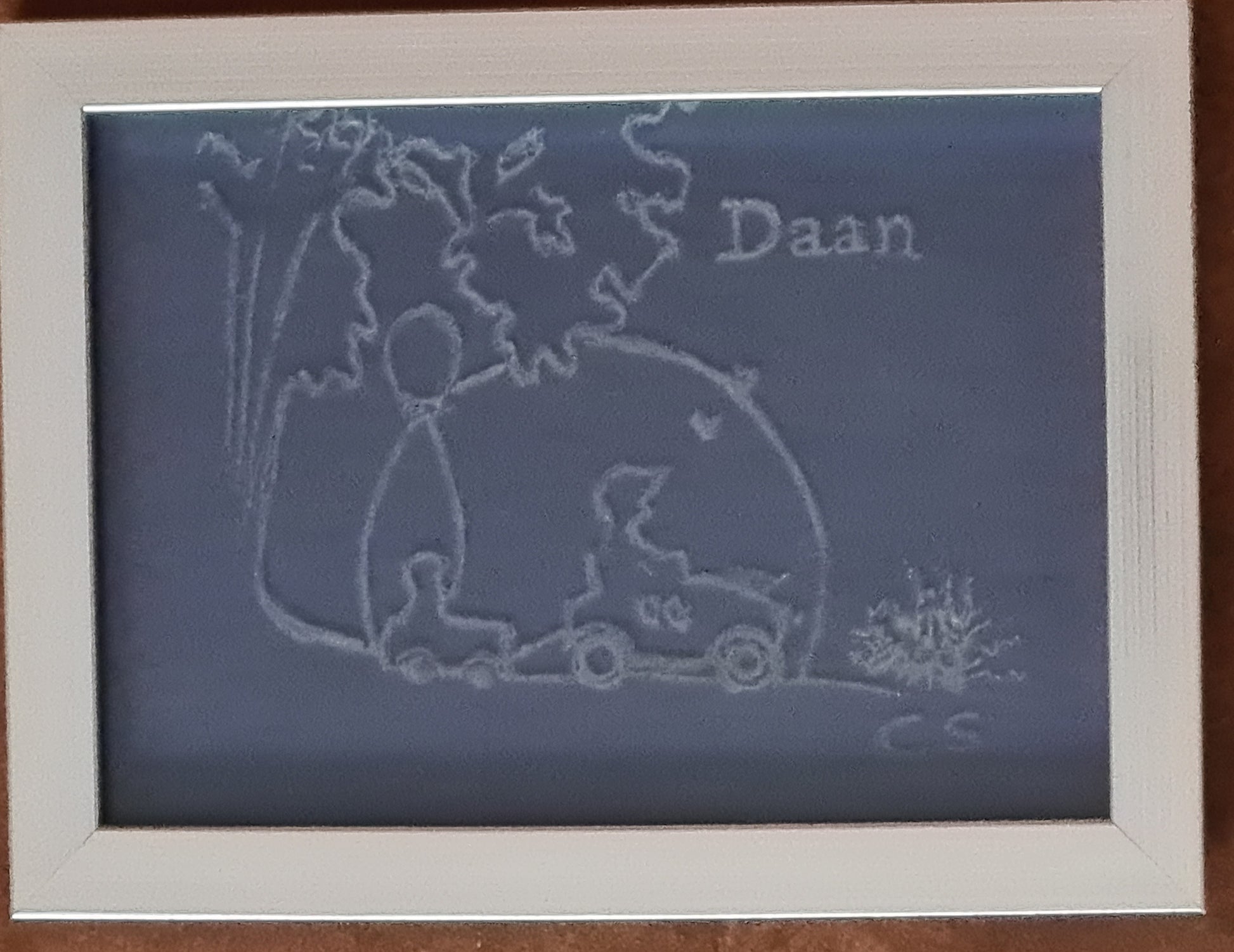 Jouw geboorte kaartje op een fotolijst gegraveerd.