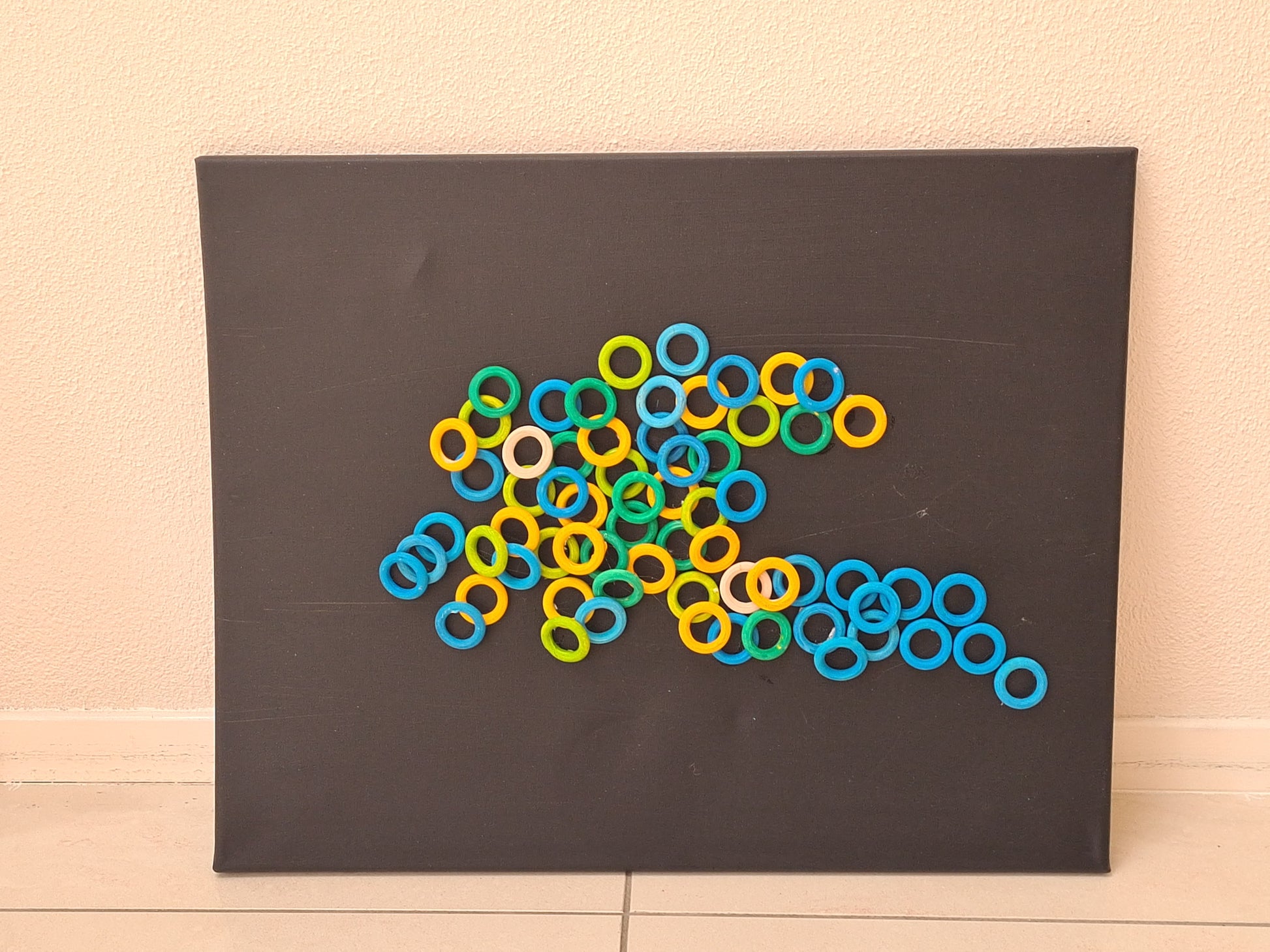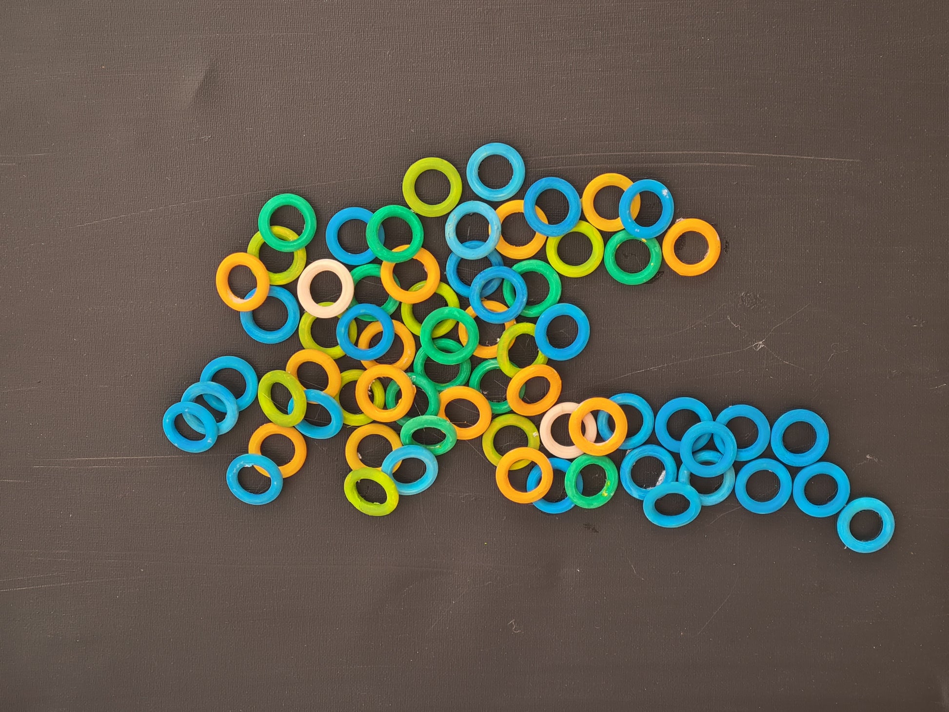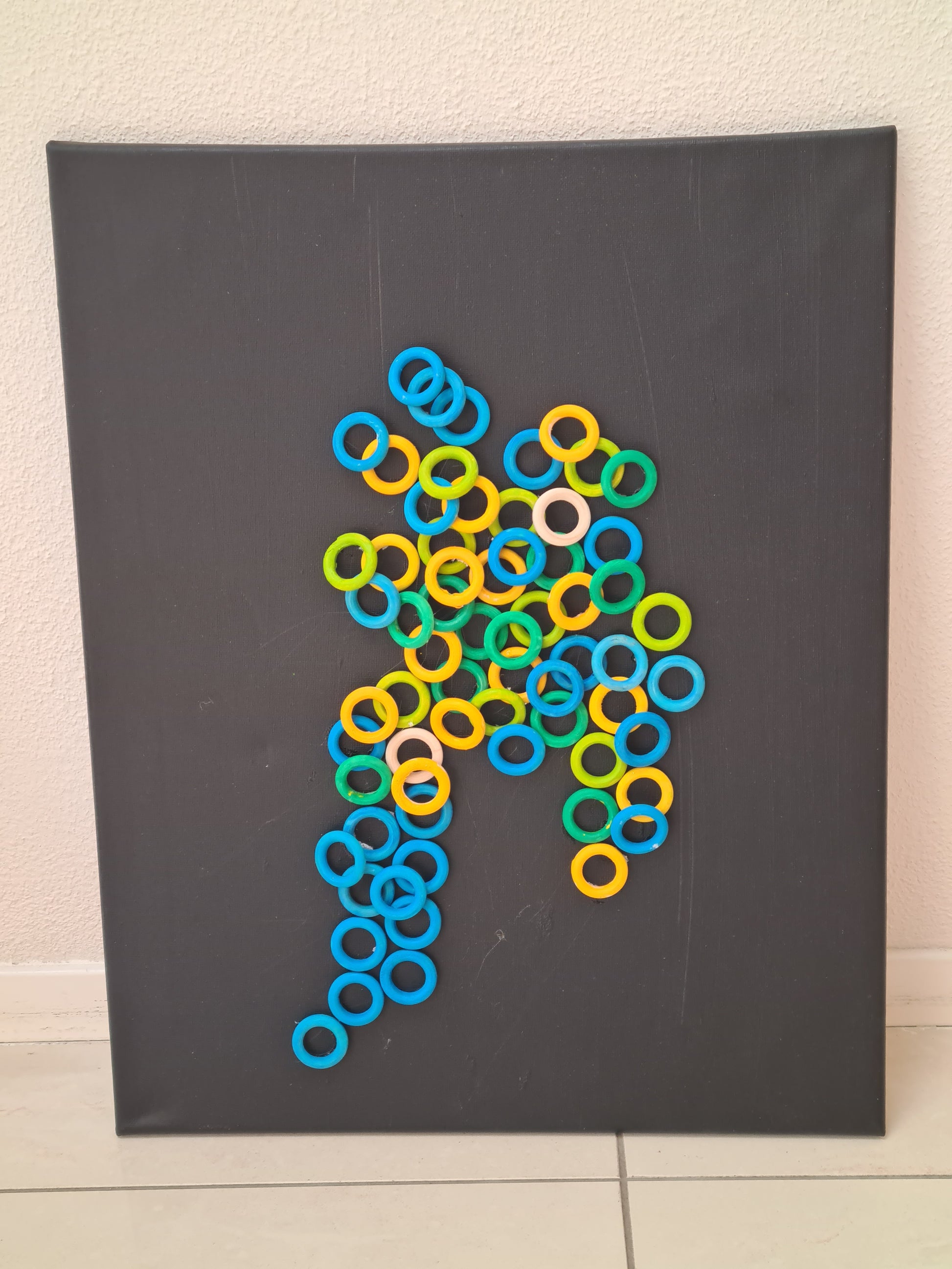 De lijst 50/40 van zwart, verschillende gekleurde houten ringen.